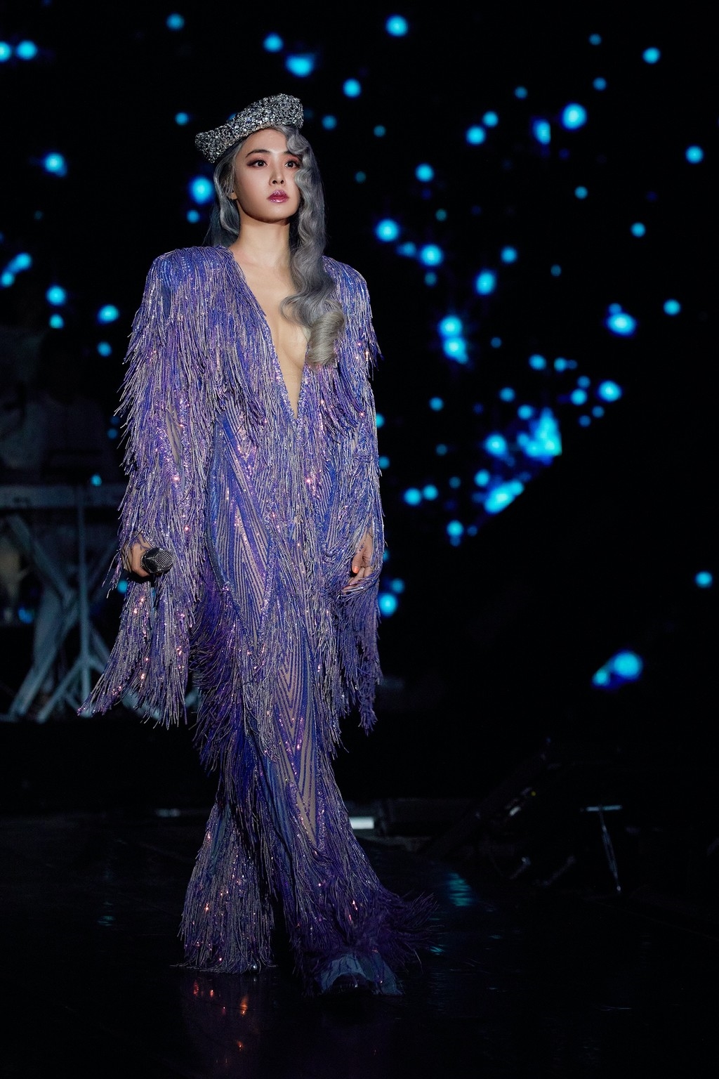 除了开场给足视觉,先前以13套华服贯穿演唱会六大主题、近40首神曲的蔡依林这次特别请造型师更新了五套前卫风格的绝美造型,包括俏丽可爱风格的“粉彩怪美芭比”、以全身银灰色流苏点缀的“炫目复古嬉皮风歌姬”、充满越野赛车感“荧光越野舞伶”、前卫大胆的“艺术精灵”、中性感十足的荧光黄绿色西装套装等,每套都令歌迷目不暇给,其中最让人惊艳的莫过于“炫目复古嬉皮风歌姬”这套造型。