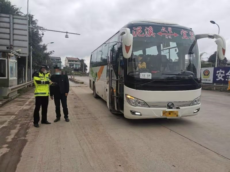 11月22日上午,四川高速交警三支队七大队民警,在G93成渝环线高速泥溪收费站开展“秋冬季交通安全整治百日会战”违法查处工作,在对一辆号牌为川Q91**6泥溪前往宜宾的大型客车车内安全设施以及乘客安全带拴系情况进行检查时,发现车上多装载了一名乘客,经核实该车核载人数为38人、实载为39人、超员1人。随后,民警对驾驶员彭某进行了批评教育,依法对其开具违法行为处理通知书,告知驾驶员通知所属公司到大队进行约谈处理,并对车上超员的乘客进行现场转运,及时消除安全隐患。