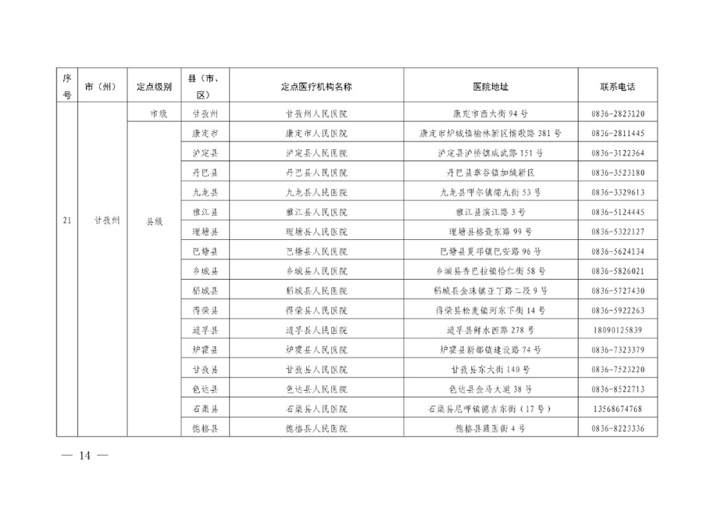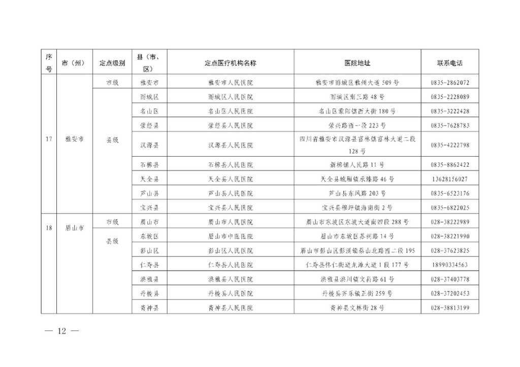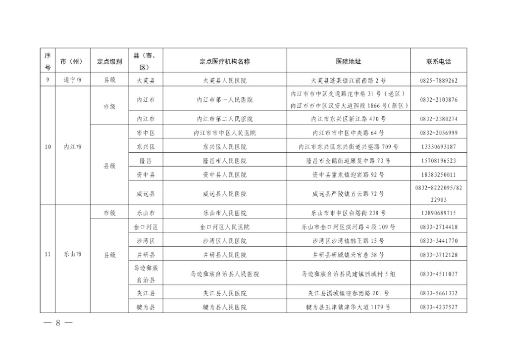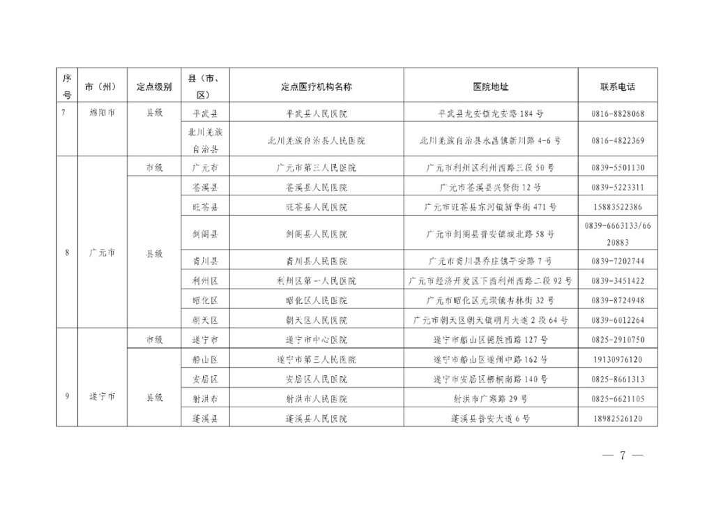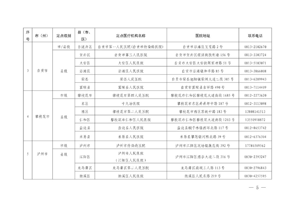 四川省应对新冠肺炎疫情救治定点医院信息