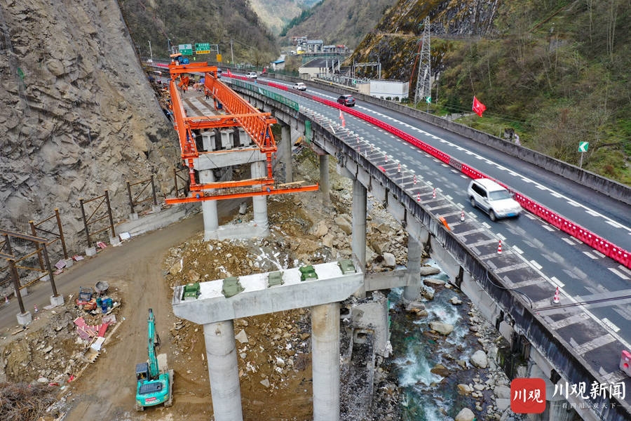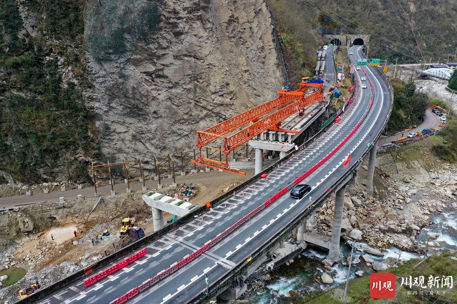 今年9月20日,姚河坝大桥临近山体发生高位崩塌,致大桥右幅损毁。在完成应急抢险和左幅双向通行后,灾后重建工作赓即开展,于11月15日开始架设T梁梁板。按照计划,姚河坝特大桥将于春节前完成灾后重建,恢复双幅双向通行。