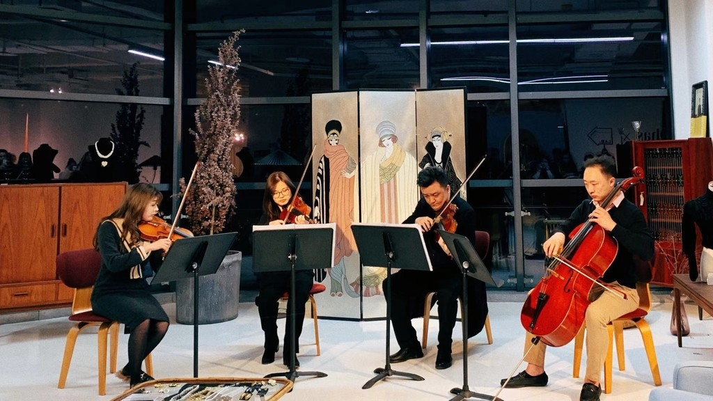 “如果我们需要更低的音,除了小提琴还有什么乐器可以?”“贝斯。”“如果我们需要更丰富的音乐,这里的室内乐需要……”“增加管弦乐队,增加人数呗。”“对,增加完各种因素后,它就变成我们在音乐厅里看到的交响乐了。所以室内乐可以说是交响乐的前身,交响乐的爸爸。”11月23日晚,四川交响乐团首席张韬一边抽丝剥茧地聊着音乐趣闻,一旁的乐迷兴奋地顺着他的思路回答问题。当天晚上,在成都大陆国际的一家中古家具体验馆内,一场浸没式的室内乐分享会,带着大家穿越时空,纪念贝多芬诞辰250周年。