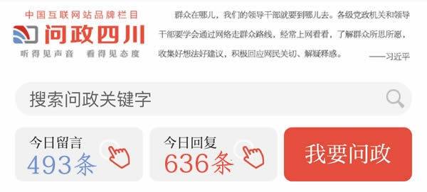 “问政四川”日均收到网民留言400多条,四川全省入驻“问政四川”平台的账号达3000余个,覆盖了全省各级政府职能部门。网友留言得到回复比例在90%以上。