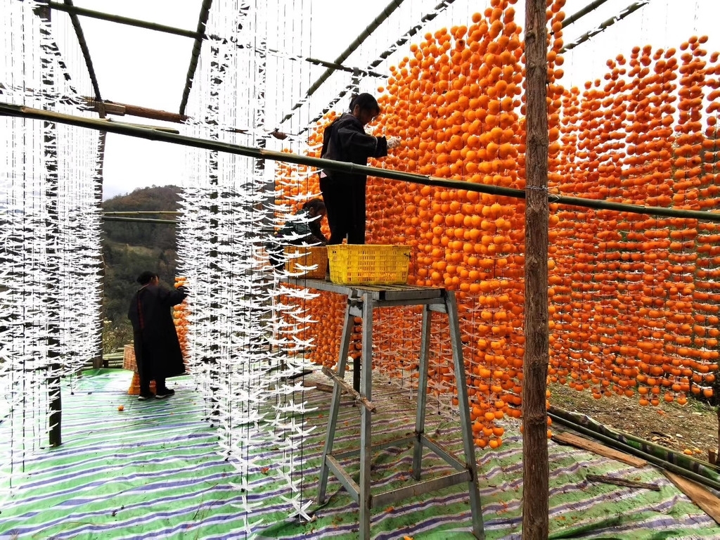 苏阳村毗邻唐家河国家级自然保护区,曾是省定贫困村,全村最大的经济来源就是树上的柿子和祖辈传承下来做柿饼的手艺。全村现有百年以上古柿子树1000多棵,村里群众采摘的鲜柿子一直由村上成立的种植专业合作社定向收购,聘请村上手艺人制作成柿饼,再统购统销。2020年预计采摘柿子3万余斤,带动100余名贫困户增收1000元左右。