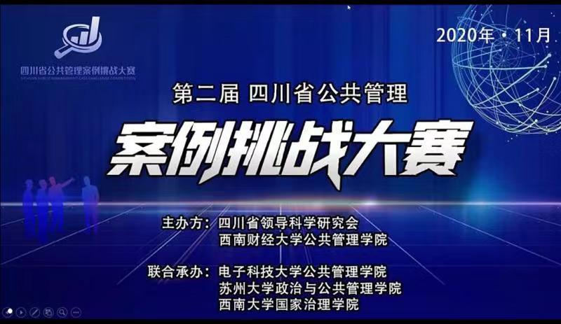 第二届四川省公共管理挑战大赛由四川省领导科学研究会、西南财经大学公共管理学院共同主办。本届大赛聚焦我国公共管理领域相关的重大和热点问题,鼓励学生运用公共管理理论和调查研究方法深入分析案例问题,提出可行的解决思路或方案,为广大学生提供公共管理理论和实践训练的平台,助力未来卓越公共管理人才的培育。