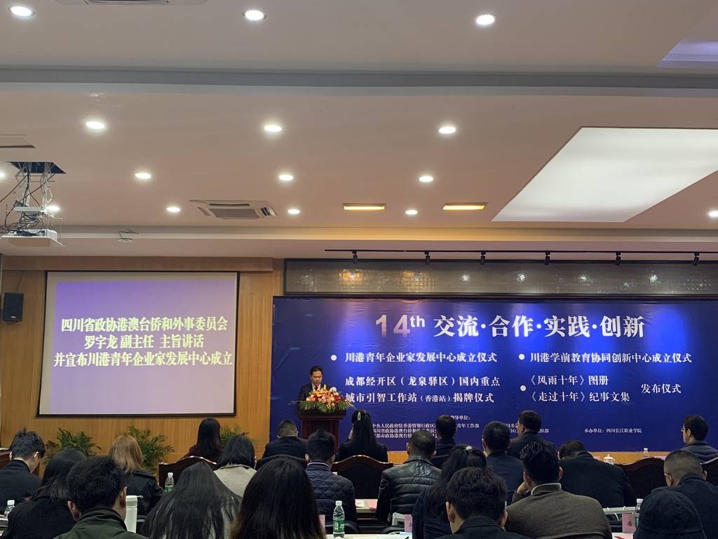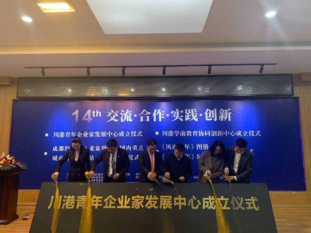 当天,川港青年企业家发展中心成立仪式在四川长江职业学院隆重举行,像肖義清这样的香港在川创业青年在成都有了新家。