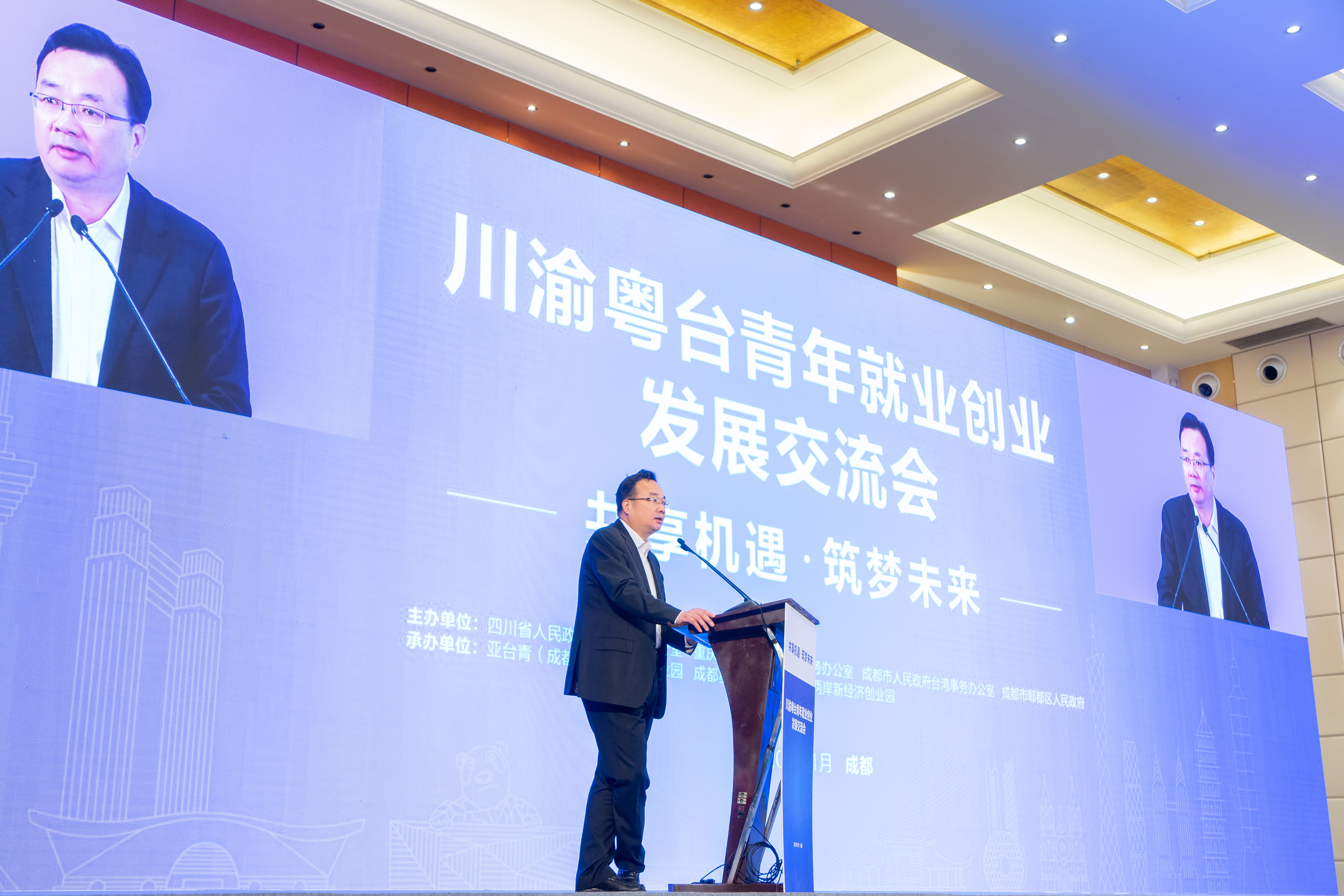 当天,由四川省台办、重庆市台办、成都市台办、郫都区人民政府共同举办的“川渝粤台青年就业创业发展交流会”在成都开幕,交流会以“共享机遇·筑梦未来”为主题,来自四川、重庆、广东、上海150名和台北线上200名台湾青年参加交流会。活动将于28日在重庆结束。