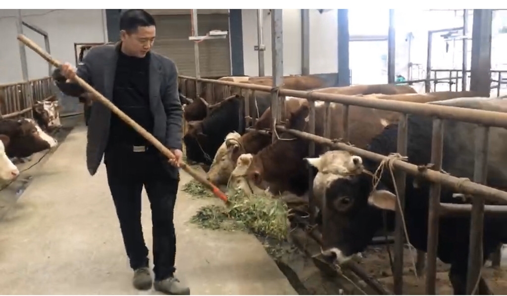 将牧草宰碎,按照比例和上玉米面、麦麸等粮食,用三轮车把草料运到牛场喂牛。11月23日,记者见到刘小彬时他正在厂里忙得不亦乐乎。对了,忘了说他的新身份——高家村电科生态牛场场长。“这两天天气好,把牛喂了,回家还能带父母和娃娃出去晒晒太阳。”刘小彬说这样的生活是以前想都不敢想的。