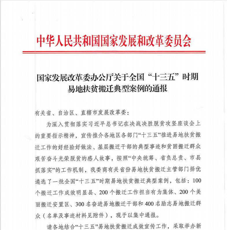 11月25日,记者从四川省以工代赈办获悉,国家发展改革委办公厅近日发布关于全国“十三五”时期易地扶贫搬迁典型案例的通报。《通报》发布了全国100个搬迁工作成效明显县,四川9县市入选。
