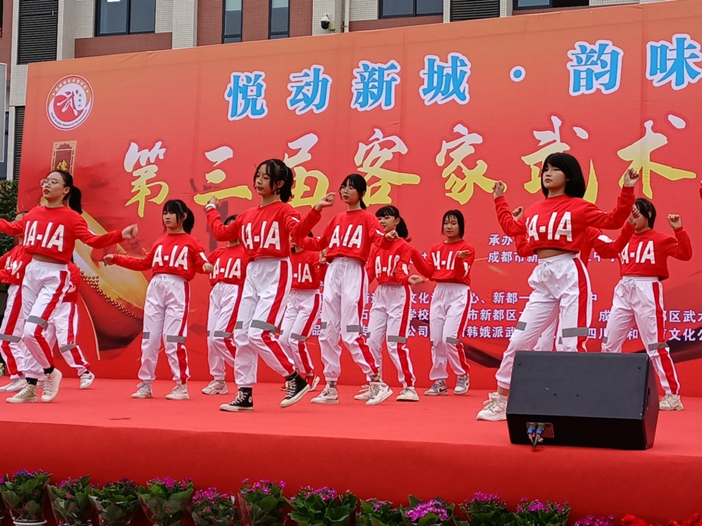 为传承客家武术文化,弘扬韩娥自强精神,11月24日上午,“悦动新城·韵味客家”第三届客家武术文化节开幕式在成都市新都区木兰中学举行,武协代表队以及新都区各中小学演出队在这里以武会友,为观众带来精彩纷呈的节目。