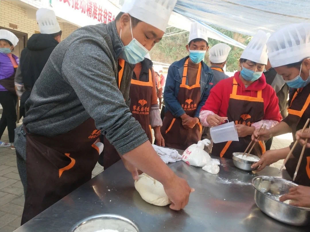 下剂、揉面、擀皮…不一会儿,一张张厚薄均匀的饺子皮擀制出来,一个个饱满圆润的馒头送进蒸屉。近日,攀枝花市仁和区啊喇乡啊喇村村民们头戴厨师帽,为技能培训考试忙碌。而20天前,他们中还有很多人连和面都不会。