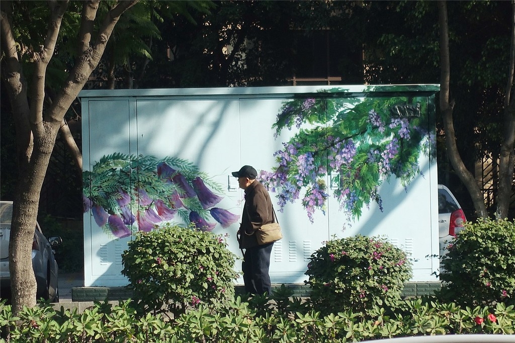 “画得真好,让人看着心情舒畅,城市整体的美感也提升了不少。”11月25日,攀枝花市东区新源路路口,手拿画笔的画师正在给街边的配电箱箱体作画,原本墨绿色的箱体被漆成浅蓝色,攀枝花、荷花、蓝花楹,芒果、樱桃、石榴、草莓,这些攀枝花特色植物水果,让原本冷峻单调的箱体变成一件件精美的“艺术品”,吸引了不少路人驻足欣赏。