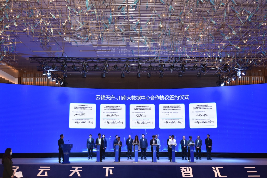 活动现场,阿里巴巴、腾讯云、华为等企业与云锦天府-川南大数据中心进行了签约,而宜宾浪潮科技、宜宾市住房公积金管理中心等作为首批入驻客户代表与长江上游区域大数据中心进行了签约。
