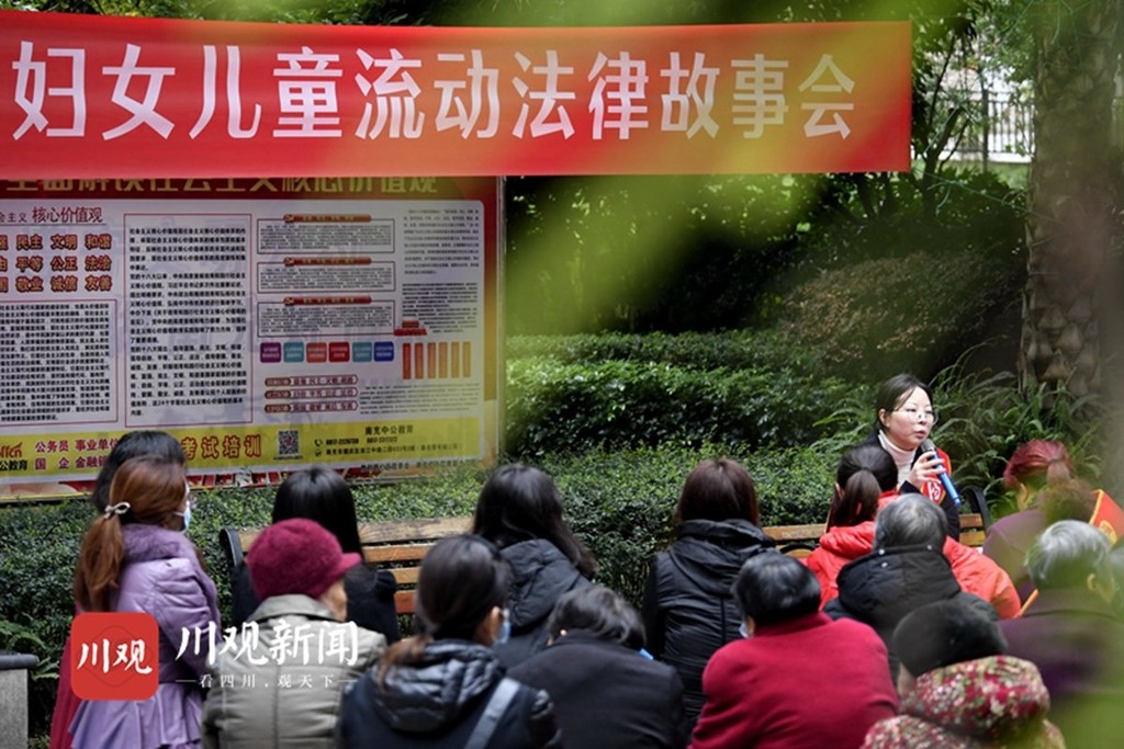 11月26日,由南充市司法局组织的首场“南充市妇女儿童流动法律故事会”在南充市顺庆区北城街道的泰合尚渡小区开展,现场律师段林林以聊天、摆龙门阵、唠家常的方式分享多个发生在身边的维权故事,让现场聆听的妇女学会维权。