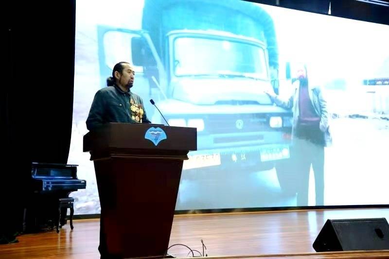 在宣讲会现场,其美多吉讲述了他三十年如一日,坚守雪线邮路的故事,向全场师生传递执着奋进、践行劳动的精神。他说:“我们每一个邮车驾驶员都被大雪围困过,当过‘山大王’。被困山上时,寒风裹着冰雪碴子,像刀子刮在脸上,手脚冻得没有知觉。有一次遇到雪崩,我和同事用水桶和铁铲,一点一点铲雪,两天两夜才走了1公里。”