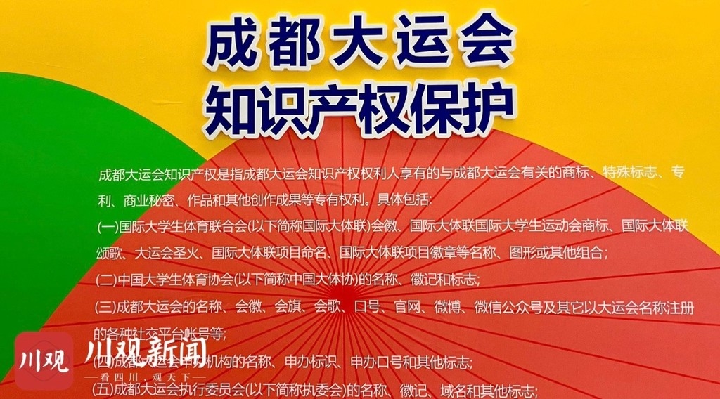 成都大运会执委会市场开发和活动策划部知识产权保护处相关负责人向四川在线记者介绍,截止目前,大运会的商标、文字作品版权、美术作品版权、音乐作品版权、专利等方面的保护工作正有序推进。接下来,对大运会知识产权的注册、登记工作还将持续进行,不断完善大运会知识产权保护体系,依法及时保障成都大运会知识产权。