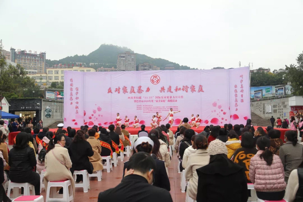 11月25日,由四川省妇联主办,巴中市妇联、巴中市政府妇儿工委办、巴中市文明办承办的“反对家庭暴力 共建和谐家园——四川省妇联‘11.25’国际反家庭暴力日宣传暨巴中市2020年度‘最美家庭’揭晓活动”在巴中市巴人广场举行。