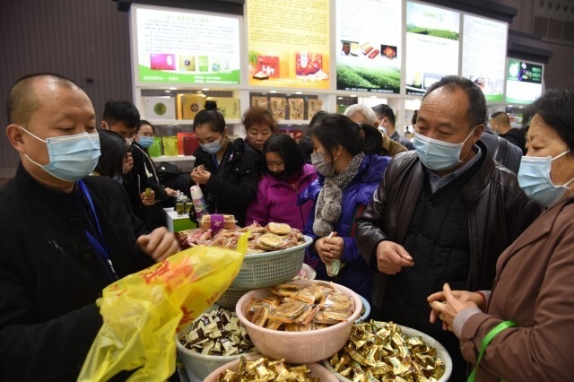 麻花、麻饼、花生酥、花生酥、绿茶、花茶、白茶、无花果果干、无花果果脆、无花果酵素……11月26日,在四川省消费品精品展内江馆里,诸多精致食品引人聚集。