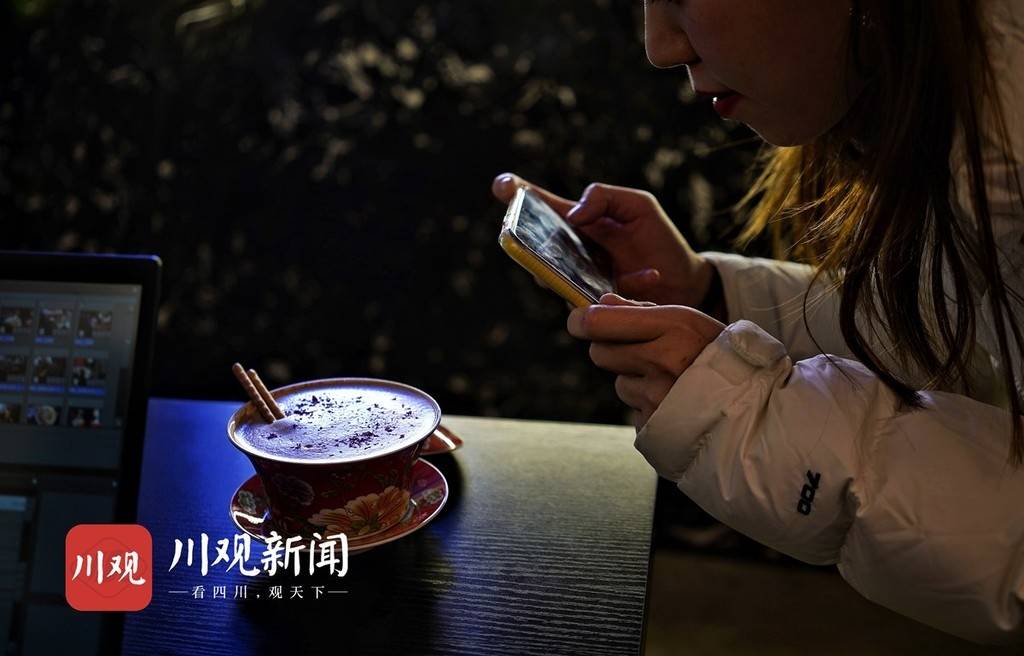 11月27日,成都外面的气温8℃左右,四川在线记者在新近打造的成都市九眼桥音乐大道上看到,某咖啡店新推出的花式“盖碗咖啡”让人惊艳。美女老板说在调制咖啡中按照比例加入红枣、枸杞、陈皮等本草,调配成的本草咖啡并与盖碗茶杯搭配,亮相后,全新的口感及品饮方式让尝鲜者都倍感新颖。
