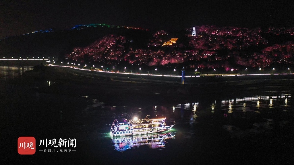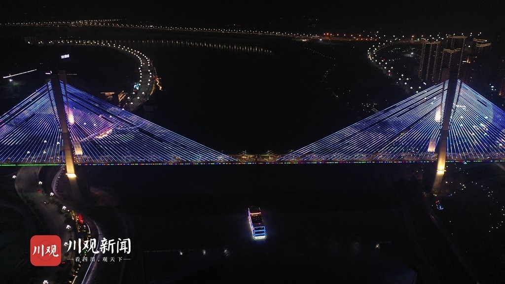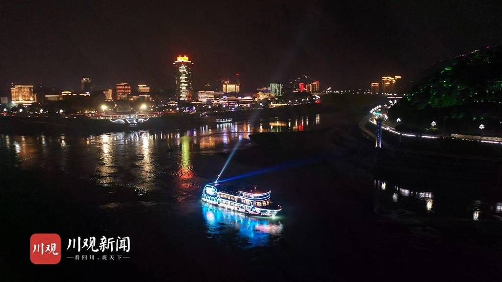 金沙江、岷江、长江三江汇合于宜宾,夜幕降临,彩灯亮起,为漆黑的夜空增添了璀璨,11月26日晚,合江门码头,水幕广场,白塔山,戎州大桥等宜宾著名地标彩灯闪烁,与江上的观光船遥相呼应。放眼望去,这座“不夜城”正以各种不同的色彩迸发出蓬勃的活力。四川在线记者以航拍的方式记录了这璀璨的一幕。