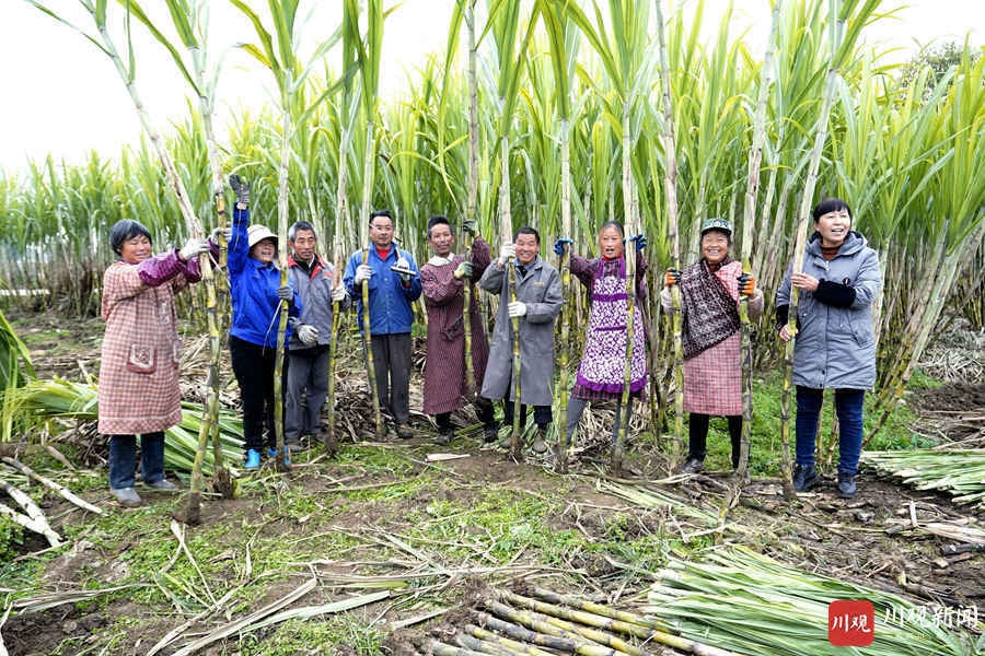 绵阳市安州区塔水镇玉池村,村民们正忙着挖甘蔗、捆甘蔗,享受丰收的喜悦。