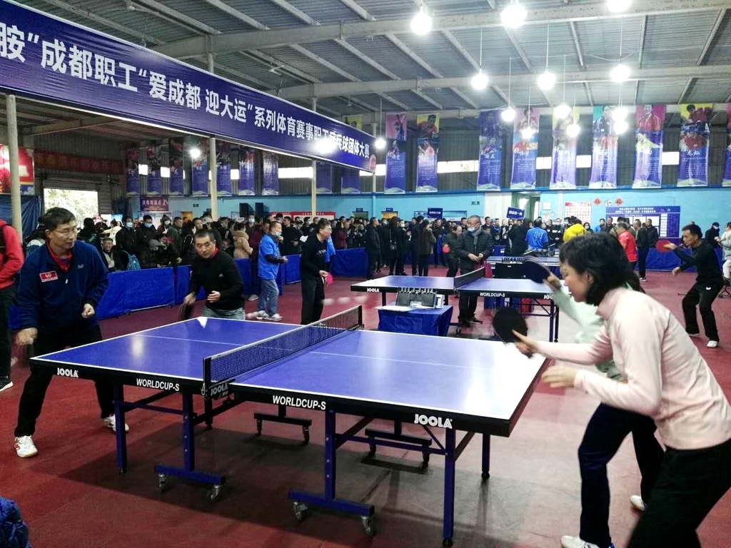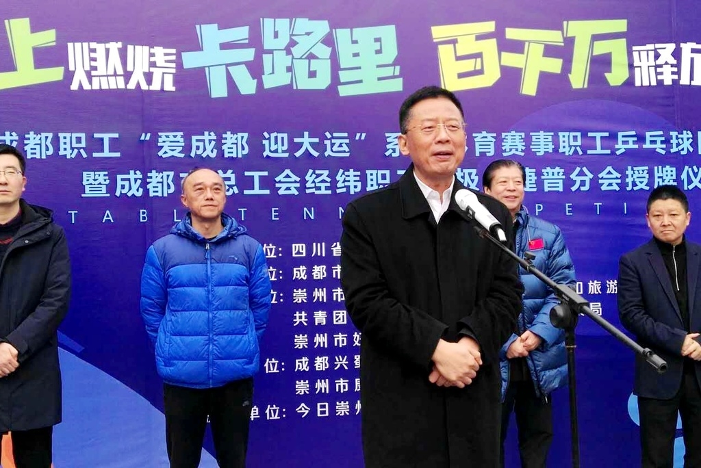 “绿道上燃烧卡路里 百千万释放多巴胺”——成都职工“爱成都 迎大运”系列体育赛事之职工乒乓球团体大赛,由成都市总工会主办,崇州市总工会、崇州市文化体育和旅游局、崇州市卫生健康局、共青团崇州市委、崇州市妇女联合会共同承办,来自成都的40支市直机关代表队,217名职工参加比赛。成都市总工会党组书记、常务副主席张余松宣布乒乓球团体大赛正式开幕。