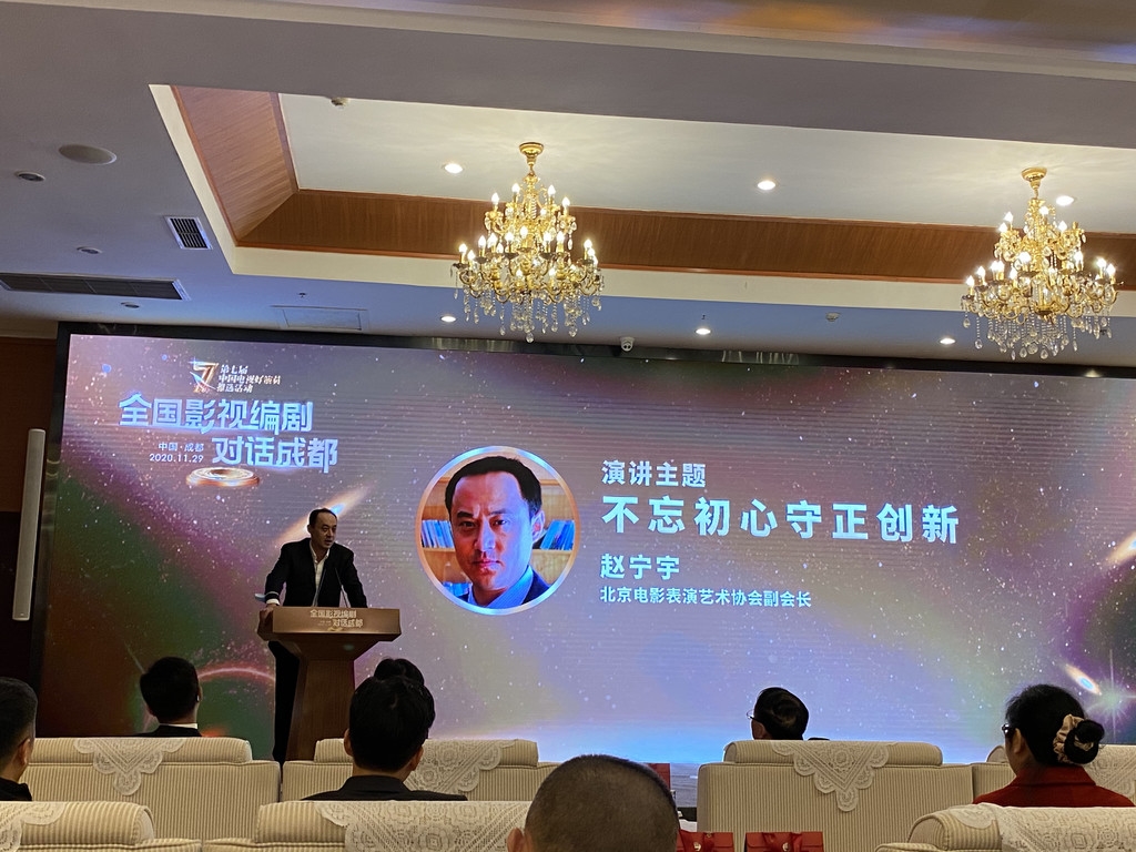 北京电影表演艺术协会副会长、北京电影学院教授赵宁宇在主旨演讲中更是形象地表达了编剧与导演的关系,他认为编剧是总设计师,导演是总建筑师,分工明确又相互协同,赵宁宇还针对目前影视行业编剧的生存状态,呼吁“尊重编剧”,以促进中国影视业的规范化,每一位影视人都应该敬畏编剧、敬畏艺术。