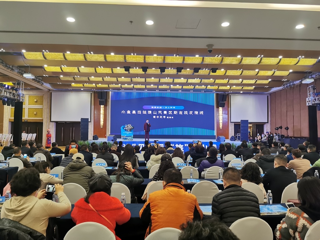 当天,阿坝州委书记刘坪率党政代表团赴重庆,推介阿坝州全域旅游。歌谣结束,容中尔甲在台上着重向重庆市民推介了位于阿坝州小金县四姑娘山幺妹峰脚下,由他投资倾力打造的省级文旅融合示范项目——斯古拉文旅城。