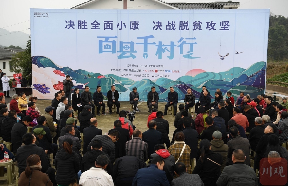 当天,四川日报全媒体“百县千村行”采访报道行走进合江,在回洞桥村召开坝坝会。包括合江县委书记李仁军在内的县、镇、村三级党委书记与村民们面对面畅聊脱贫攻坚成果经验。