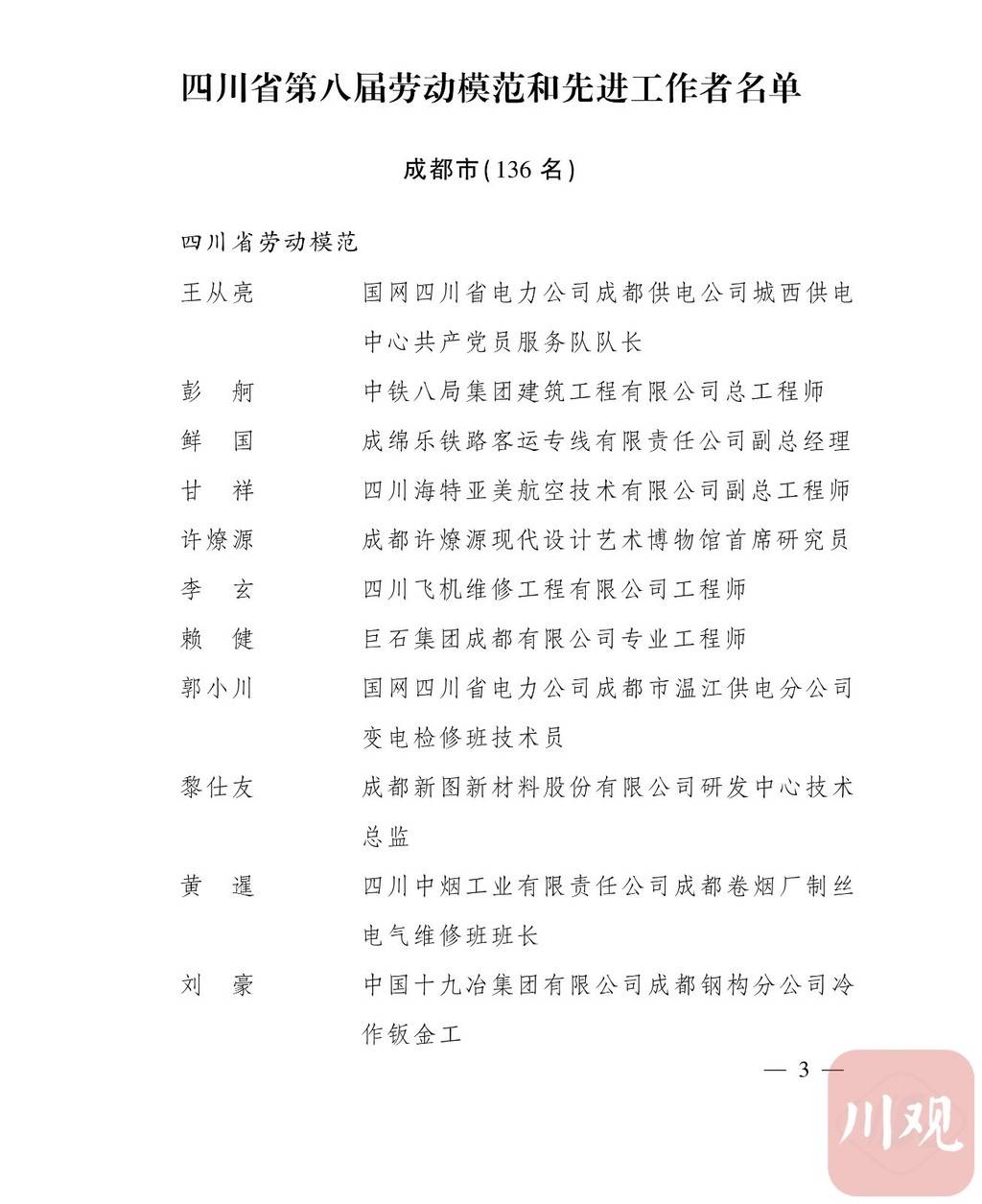 12月2日上午,四川省第八届劳动模范和先进工作者表彰大会在成都举行。大会宣读了《四川省人民政府关于表彰四川省第八届劳动模范和先进工作者的决定》。