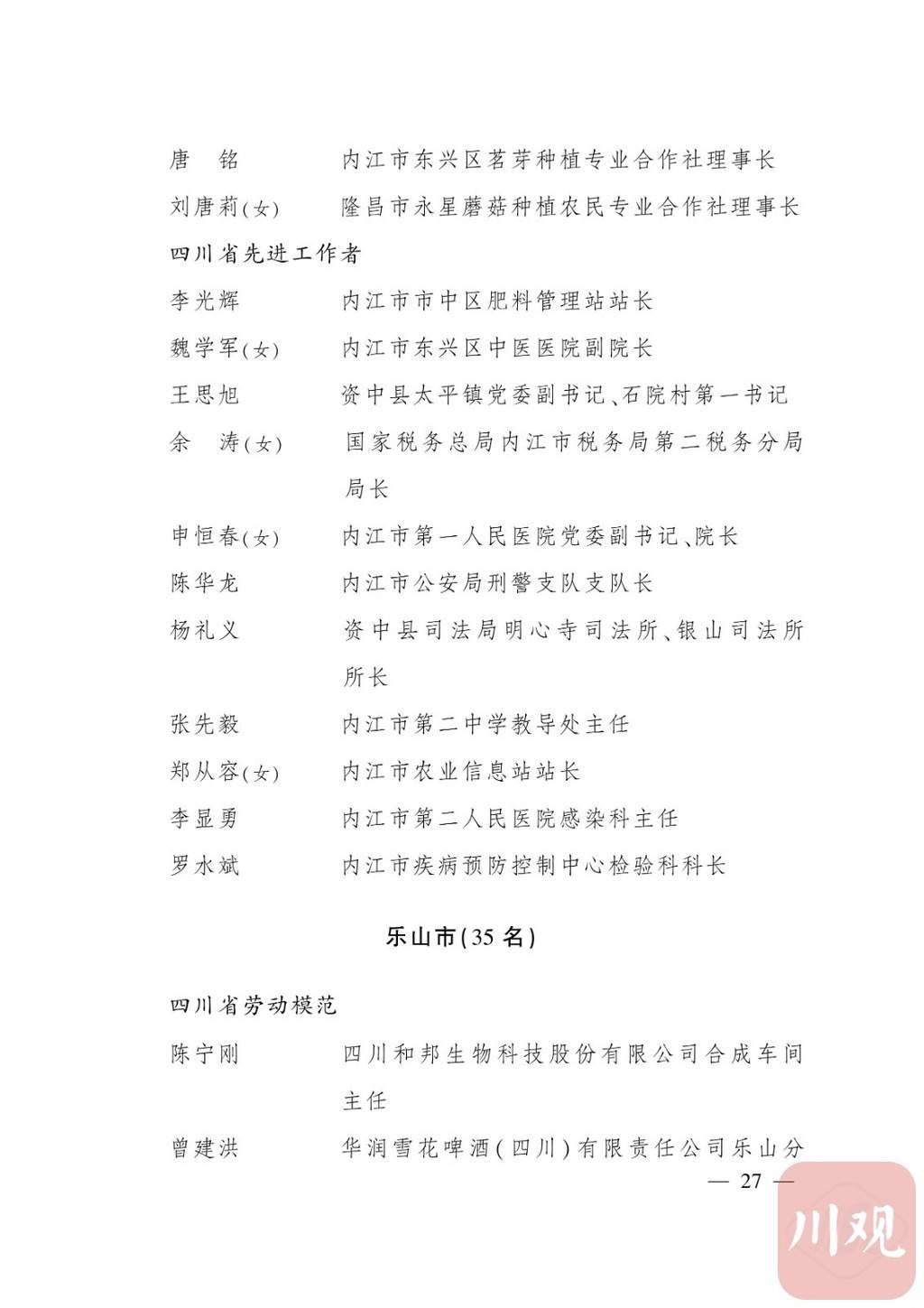 决定指出,2015年以来,全省各条战线的劳动者在推进实施省委“一干多支、五区协同”“四向拓展、全域开放”战略部署、推动四川高质量发展、坚决打赢新冠肺炎疫情防控阻击战中,涌现出一大批品德高尚、业务精湛、贡献突出的劳动者。为表彰他们的突出贡献,弘扬劳动光荣的社会风尚和精益求精的敬业风气,激励和带动全省各族人民共做新时代的奋斗者,省政府决定授予王从亮等519人“四川省劳动模范”称号,授予李晓静等279人“四川省先进工作者”称号。