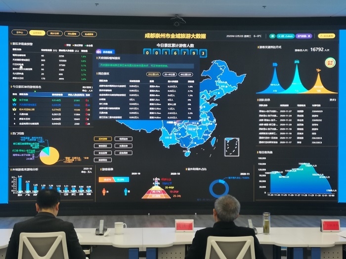 假期模式——接入崇州市全域旅游大数据支点平台,实时掌握旅游景区、交通、投诉等数据,并对景区运营承载量和游客接待量进行分析,客观反映景区旅游情况,并统一指挥和调度。