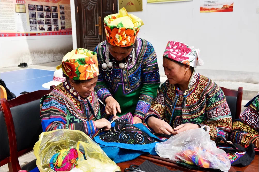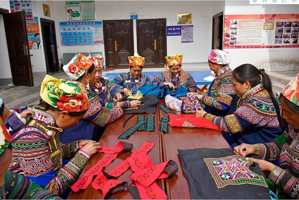 小小针尖,经过县、乡、村妇联整合,不仅让民族传统技艺在绣娘手中得以创新与发展,那密密的针脚,正在编织的还有新时代彝家人勤劳致富的小康路。