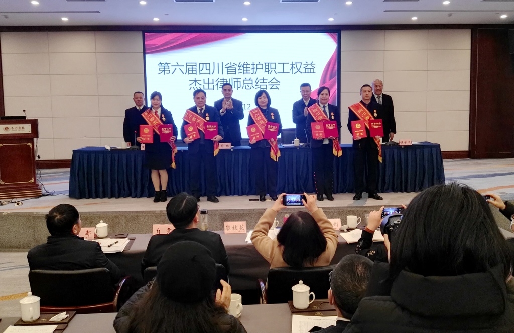 12月2日下午,省总工会、省司法厅、省律师协会在成都联合召开第六届“四川省维护职工权益杰出律师”总结会。会议宣读了《关于授予杨秀英等10名同志第六届“四川省维护职工权益杰出律师”称号的决定》《关于表扬第六届四川省维护职工权益杰出律师的决定》。省总工会决定,授予杨秀英等10名维护职工权益杰出律师四川省五一劳动奖章。
