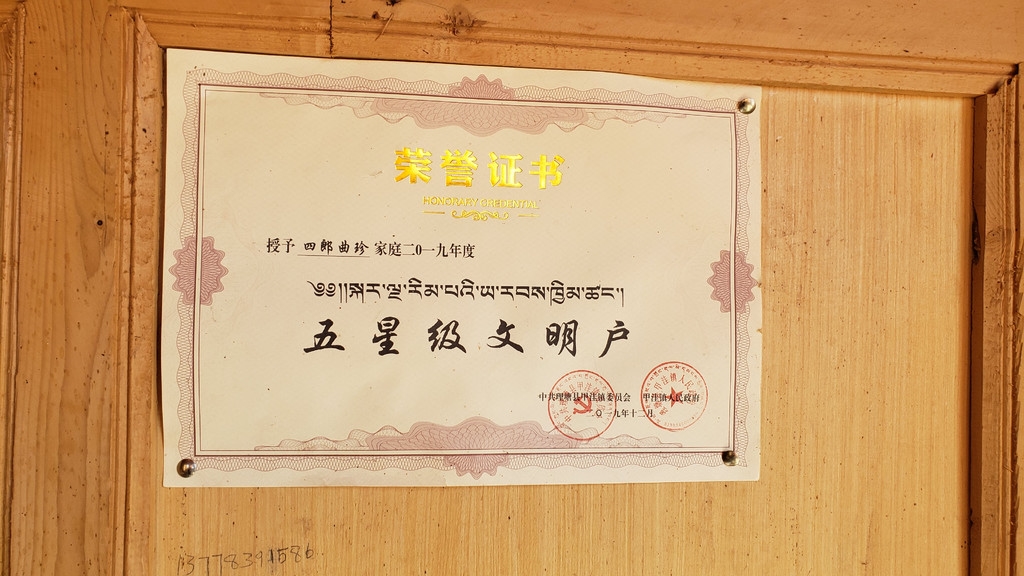 四郎曲珍一家获得的荣誉证书