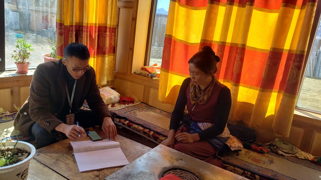 干部在四郎曲珍家了解脱贫情况