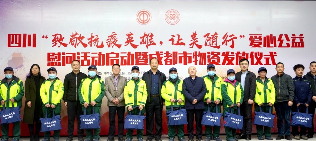 12月2日下午,由中国职工发展基金会、中国教科文卫体工会、中国海员建设工会、四川省困难职工帮扶基金会联合举行的四川“致敬抗疫英雄,让美随行”爱心公益慰问活动暨成都市物资发放仪式在成都举行。