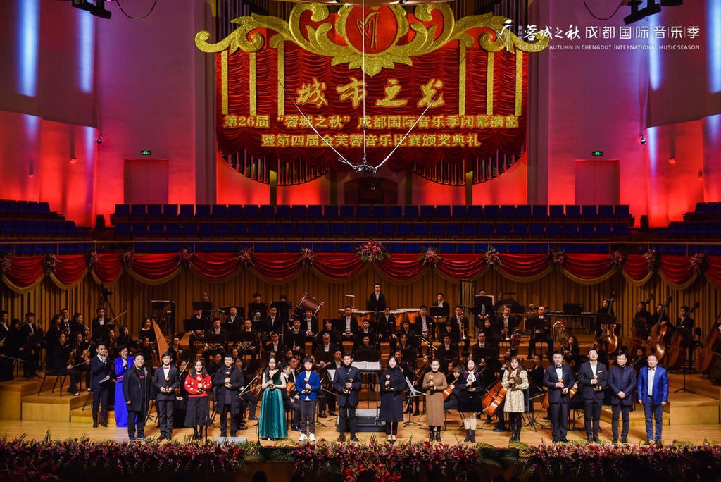 12月2日晚,第26届“蓉城之秋”成都国际音乐季闭幕演出暨第四届金芙蓉音乐比赛颁奖典礼在成都城市音乐厅隆重举行。“蓉城之秋”与“金芙蓉”音乐比赛两大优质音乐品牌携手合作,在这片充满音乐熏陶的土地上,共同培养、发展音乐人才,搭建音乐展示平台,打造全行业广泛参与的盛会,成为成都的“城市之光”。