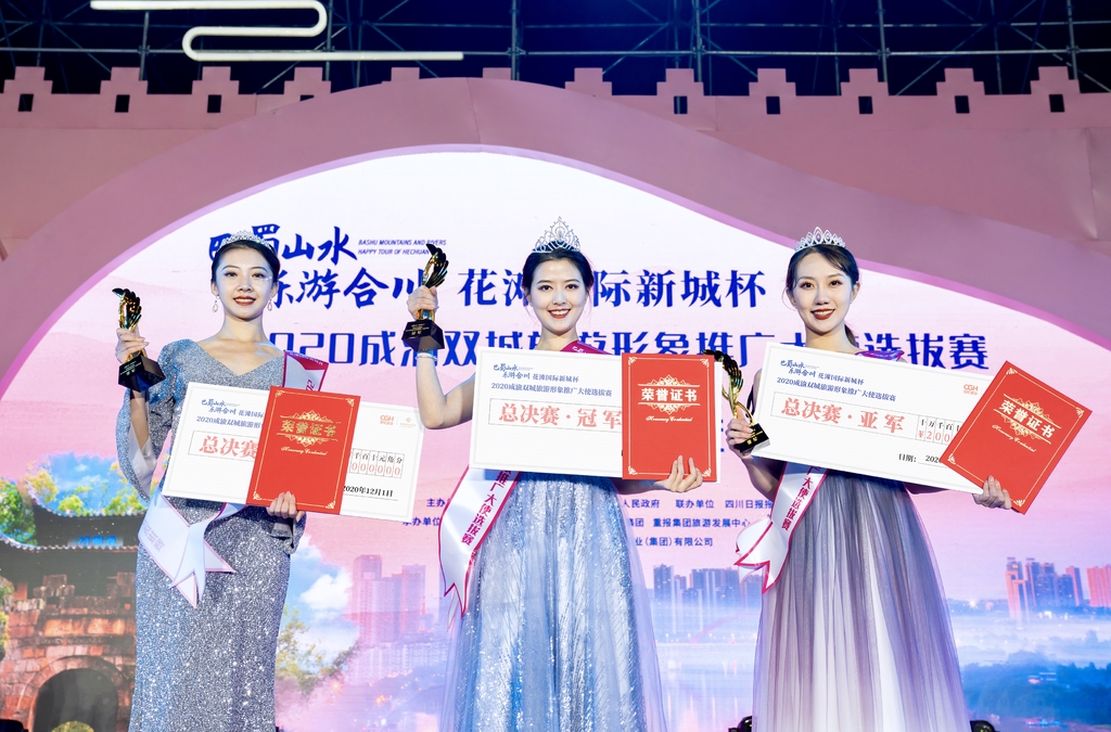 经过紧张的角逐,评委们根据古韵旗袍秀展示、时尚国潮秀展示、山水主题秀展示等各项得分,评定出2020成渝双城旅游形象推广大使冠、亚、季军。“完全没有想到可以得到冠军,未来我也将致力于推广巴蜀地区的旅游资源,当好称职的成渝双城旅游形象推广大使。”冠军获得者谭潇雪说。最佳传播奖、最佳上镜奖、最佳才艺奖等奖项也在当晚一并出炉。