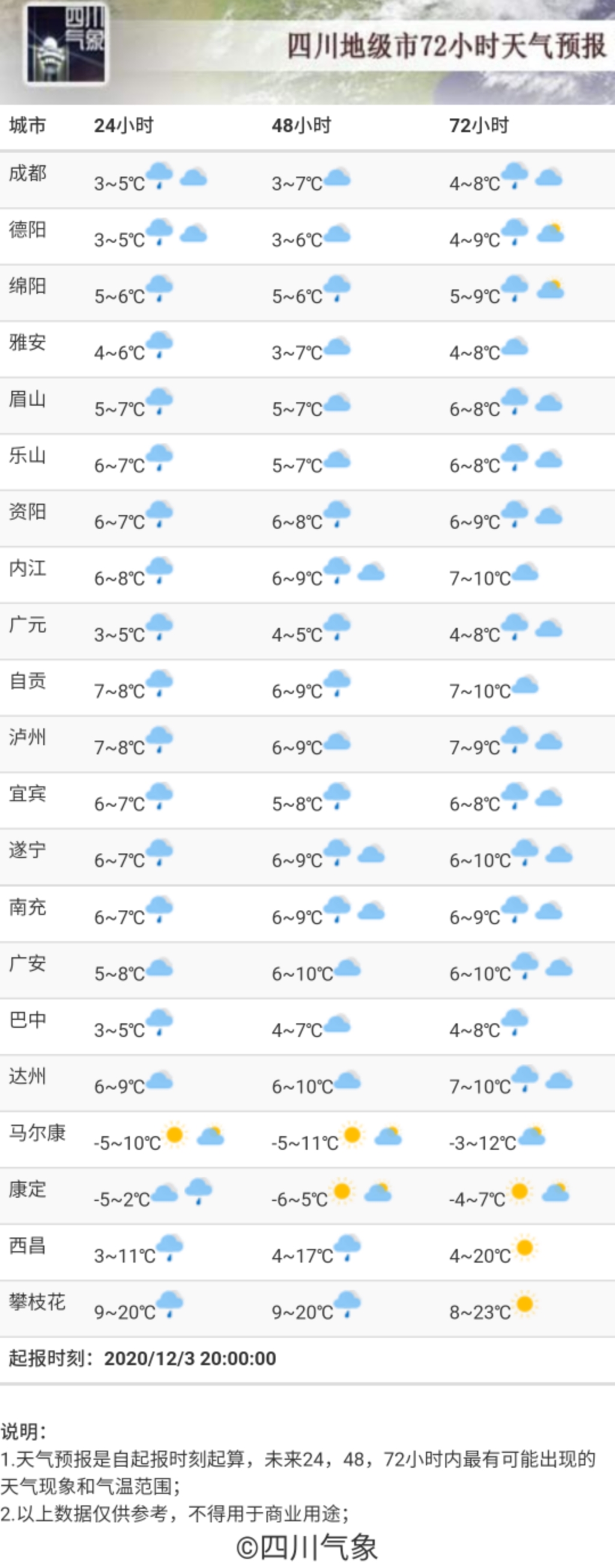 最近3天四川各城市的天气在这里。祝大家健康平安!
