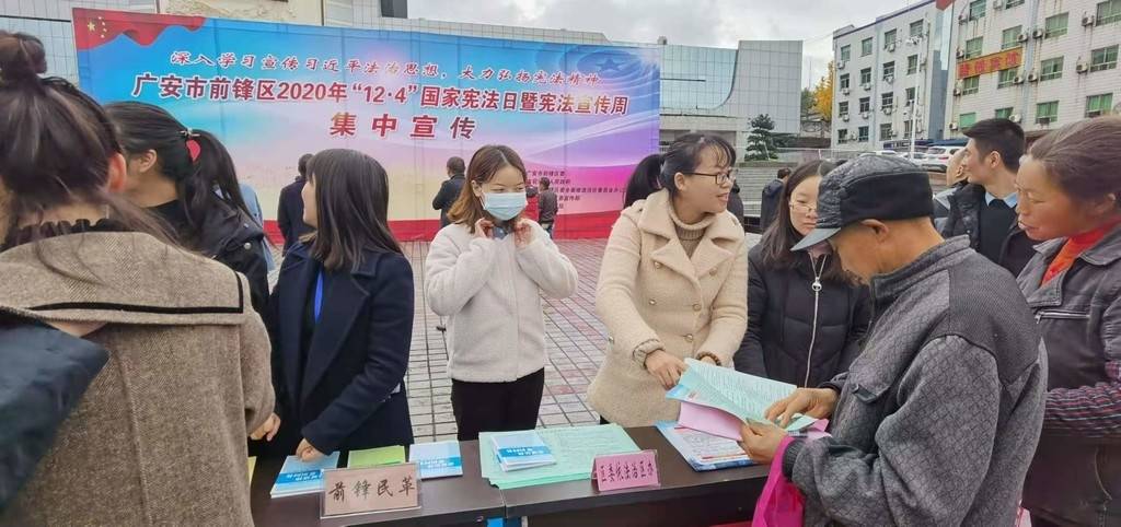 12月3日,在广安市前锋区,一场“宪法宣传周”法治宣传活动正在举行。活动由前锋区委、区政府主办,区委依法治区办、区委宣传部、区司法局承办。在活动现场,一本名叫《民法典100问》的普法读本,受到了群众的热烈追捧,被大家一抢而空。