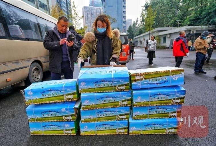 4日上午,成都市中学路,四川省疾控中心内,一辆来自湖北的大货车,为寒冷的冬日带来了暖意。一车“暖羊羊”跨过了千山万水,从蒙古国到达武汉,再从武汉到成都。车上装载的不是羊肉,而是四川人民与湖北人民的深厚情谊。