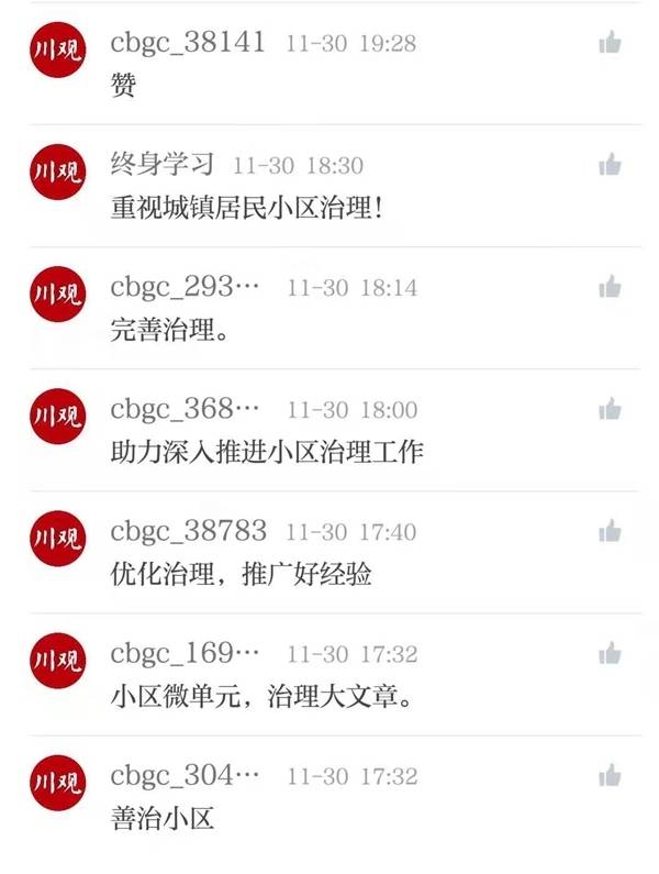 11月30日起,“‘善治小区 为Ta点赞’成都市城镇居民小区治理优秀案例展示”活动在四川在线上线,截至12月4日下午,活动引发强烈关注,已获得城乡居民点赞票数总计90万余次。