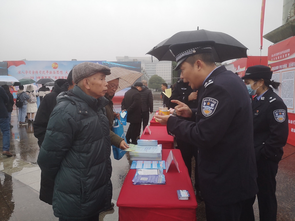 “小心钱财诈骗,阿姨,看一下这个宣传单嘛。”12月4日是我国第七个“宪法日”,南充启动宪法“宣传周”活动。南充市政新区广场上,市、区两级60多个部门(单位)开展了集中法治宣传活动,重点宣传《宪法》《民法典》、扫黑除恶、禁毒防艾、环境保护、疫情防控等内容丰富、贴近群众生活的法律法规。