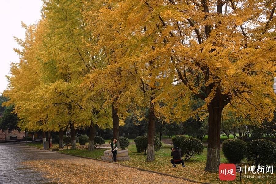 德阳市旌阳区的石刻公园内,银杏树换上了迷人的金色“盛装”。