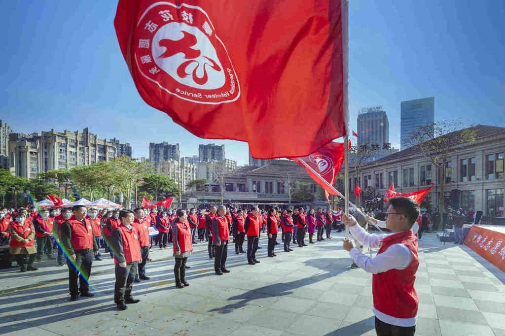 当天,包括康养论坛志愿服务队、文明实践志愿服务队、文化旅游志愿服务队、 “三线阳光”志愿服务队、“花城抗疫”志愿服务队、“党员先锋”志愿服务队在内的6支志愿服务队伍齐聚一堂。其中,由155名精兵强将组成的康养论坛志愿服务队属首次亮相。