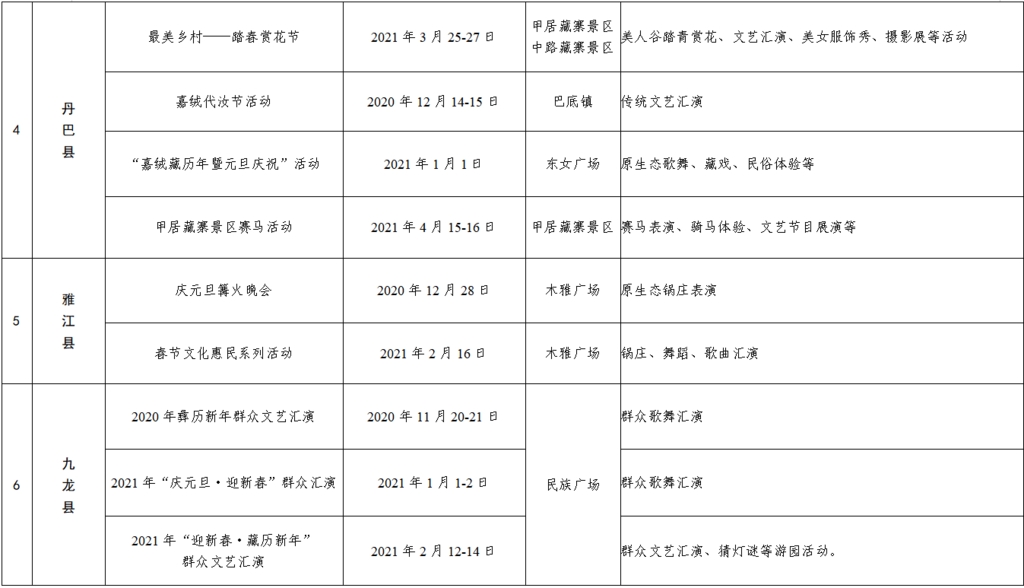 不仅如此,甘孜州各县(市)还将组织开展丰富多彩的元旦、春节、藏历新年民俗活动。