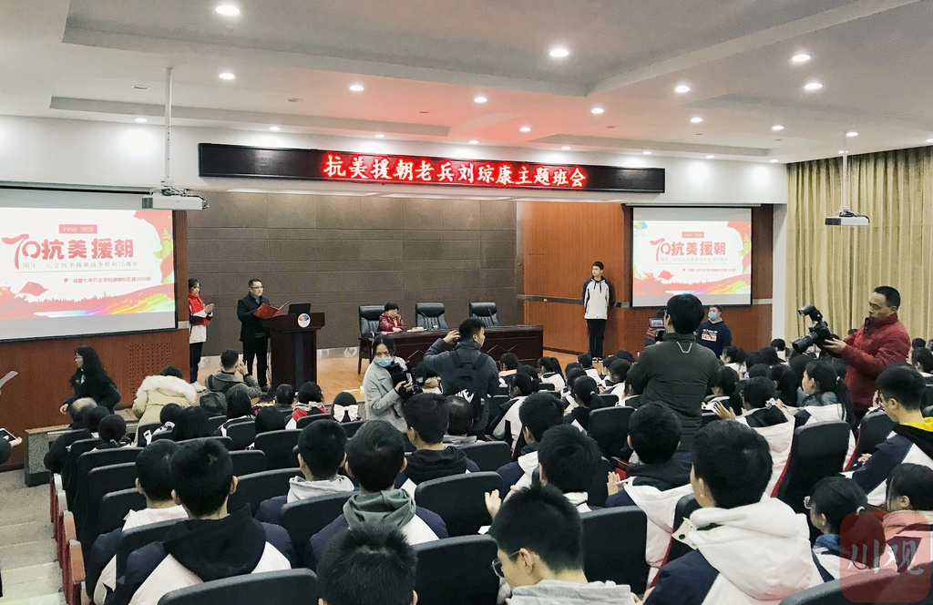 当天,七万通锦校区为高2020级同学举办了一场特别的主题班会——听该校退休英语老师、抗美援朝老兵刘琼康讲述抗美援朝故事。