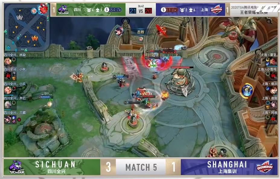 12月5日,TGA腾讯电竞运动会总决赛王者荣耀省队赛在北京进入半决赛阶段,四川全兴电竞队以3比1 战胜上海挺进决赛。