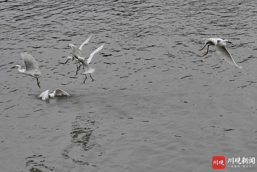 12月7日,在位于成都高新区的府河段,大量的候鸟翩翩起舞,迎风飞翔,成了都市中一道靓丽的风景线。随着府河生态环境的改变、提升,加上府河沿岸居民爱鸟护鸟意识加强,来府河越冬的鸟儿越来越多,站在河边望去,成群的白鹭和野鸭竞相飞舞,嬉戏觅食,成了候鸟的乐园。