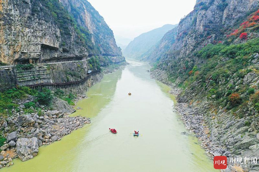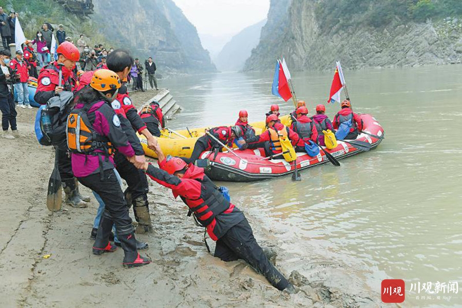 广元市朝天区是嘉陵江四川段的北部起点,重庆朝天门是嘉陵江进入长江的交汇点,自古就有“一条嘉陵江,两头都‘朝天’”的说法。10月26日,3艘载着25名专业漂流队员的漂流艇从广元市朝天区明月峡北码头下水,正式开启“千里嘉陵第一漂”。最大年龄66岁、最小年龄18岁的队员们沿江而下,一路乘风破浪,途经广元、南充、广安、合川等川渝多个城市,历时9天全程841.8公里的漂流,于11月3日顺利到达重庆市朝天门,完成了嘉陵江历史上首次开展的科学考察漂流探险活动。